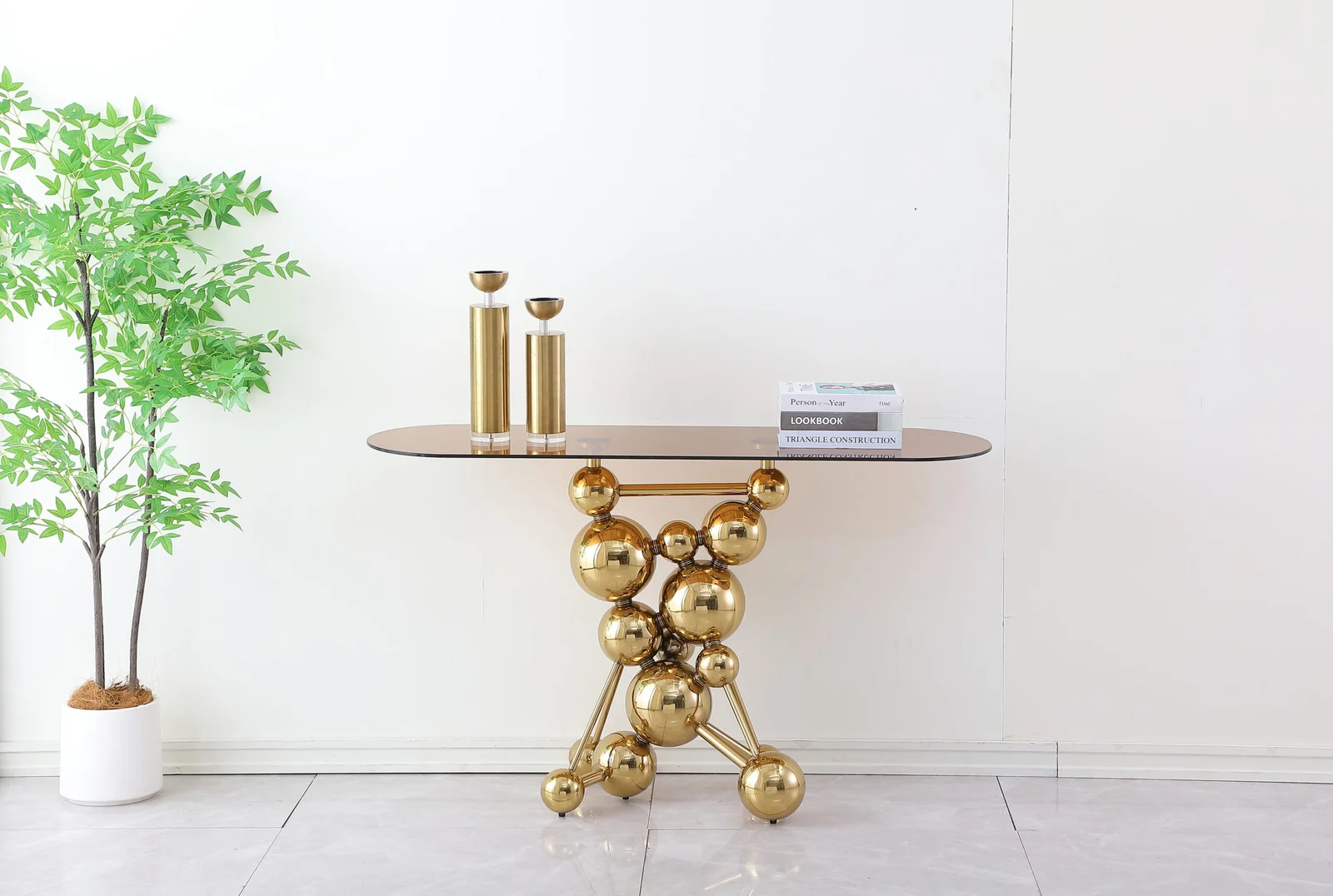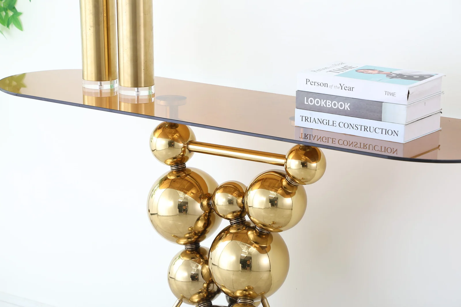 GLASS TOP CONSOLE WITH GOLDEN BASE