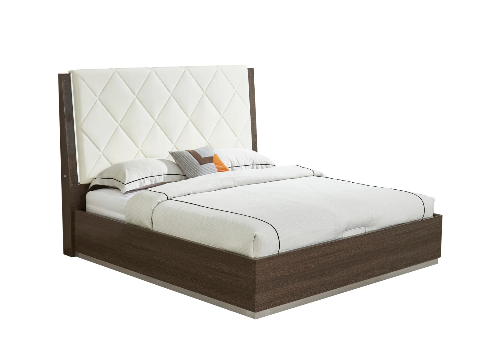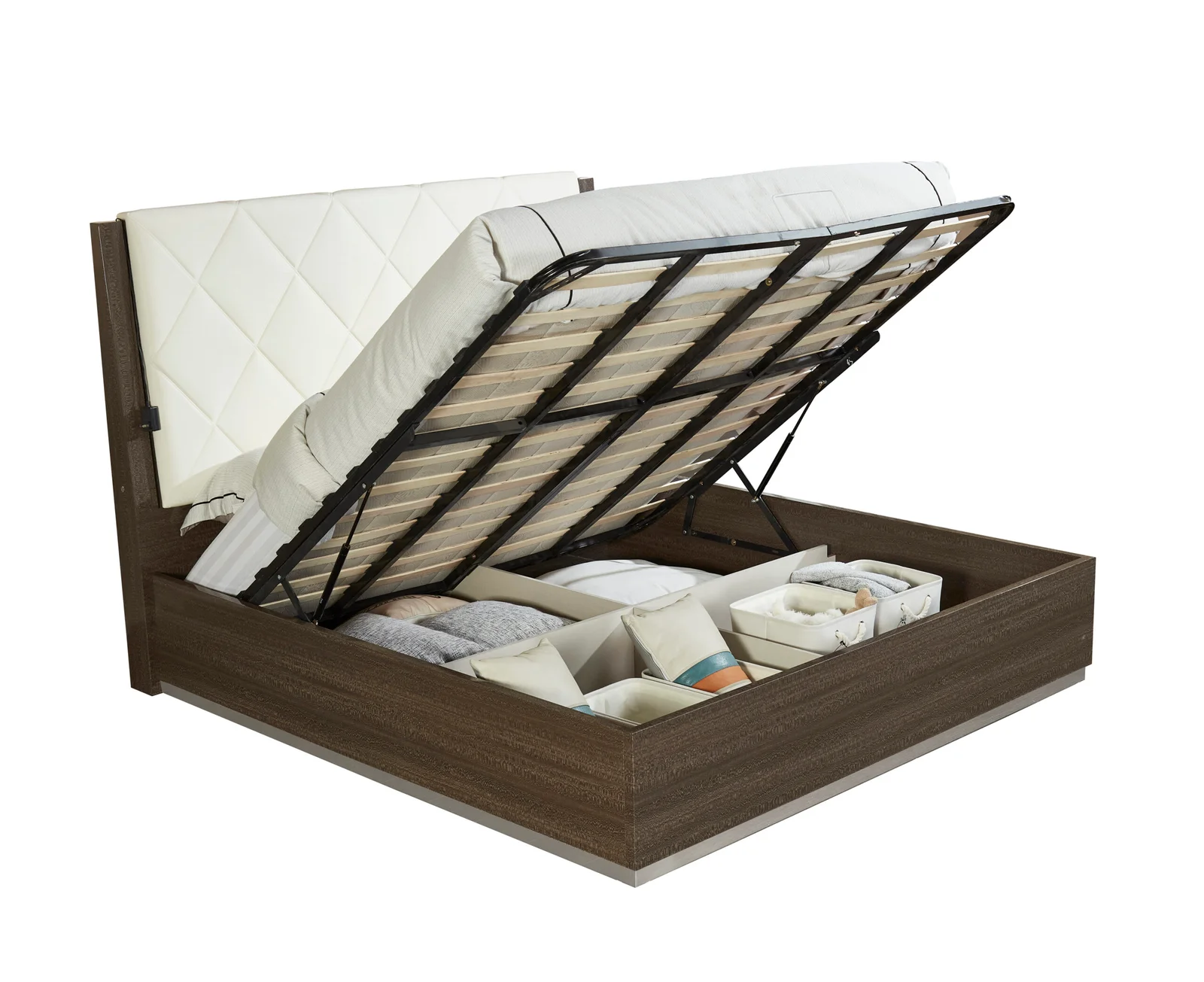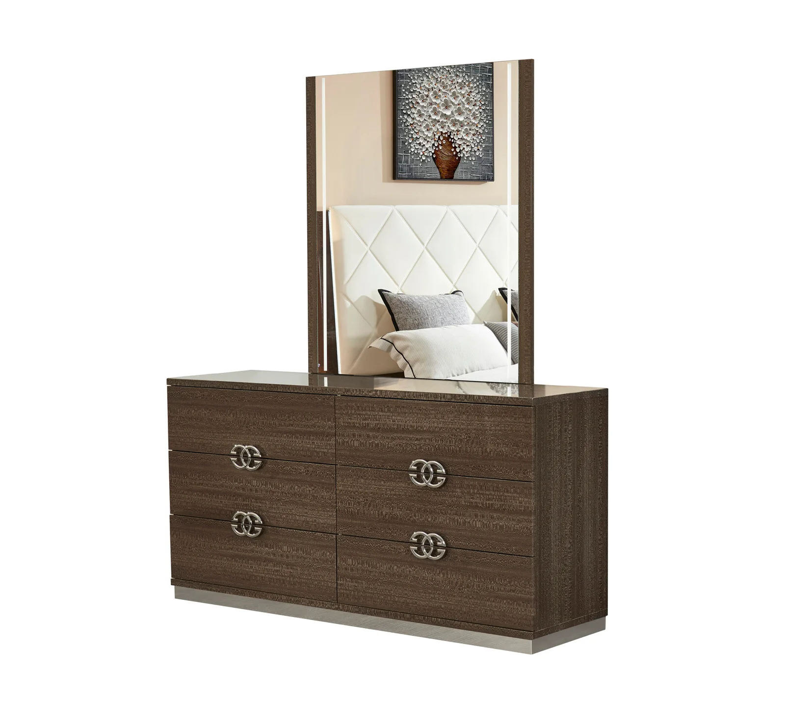 - Chrome or Metal Accents: Sleek chrome or metal accents are incorporated into the design, such as on the legs, drawer handles, and headboard trim, enhancing the modern aesthetic.