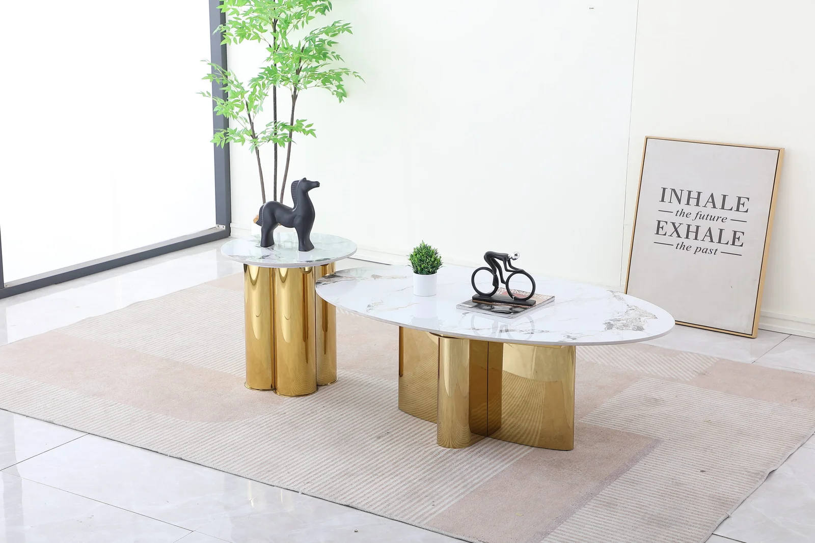 MARBLE COOFFEE TABLE WITH SIDE TABLE